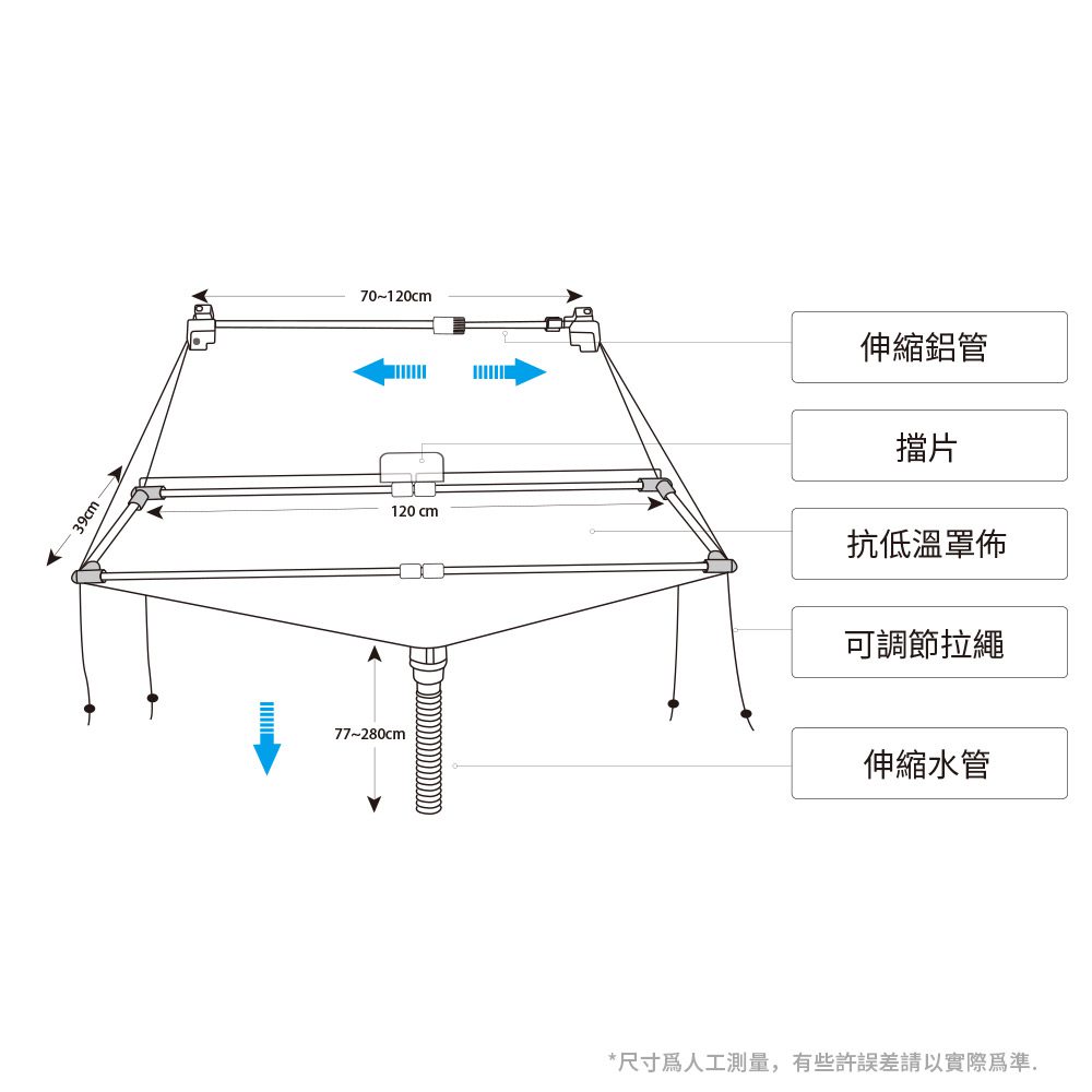 - Telescopic tube: 70 (Min.)~120 cm (Max.)